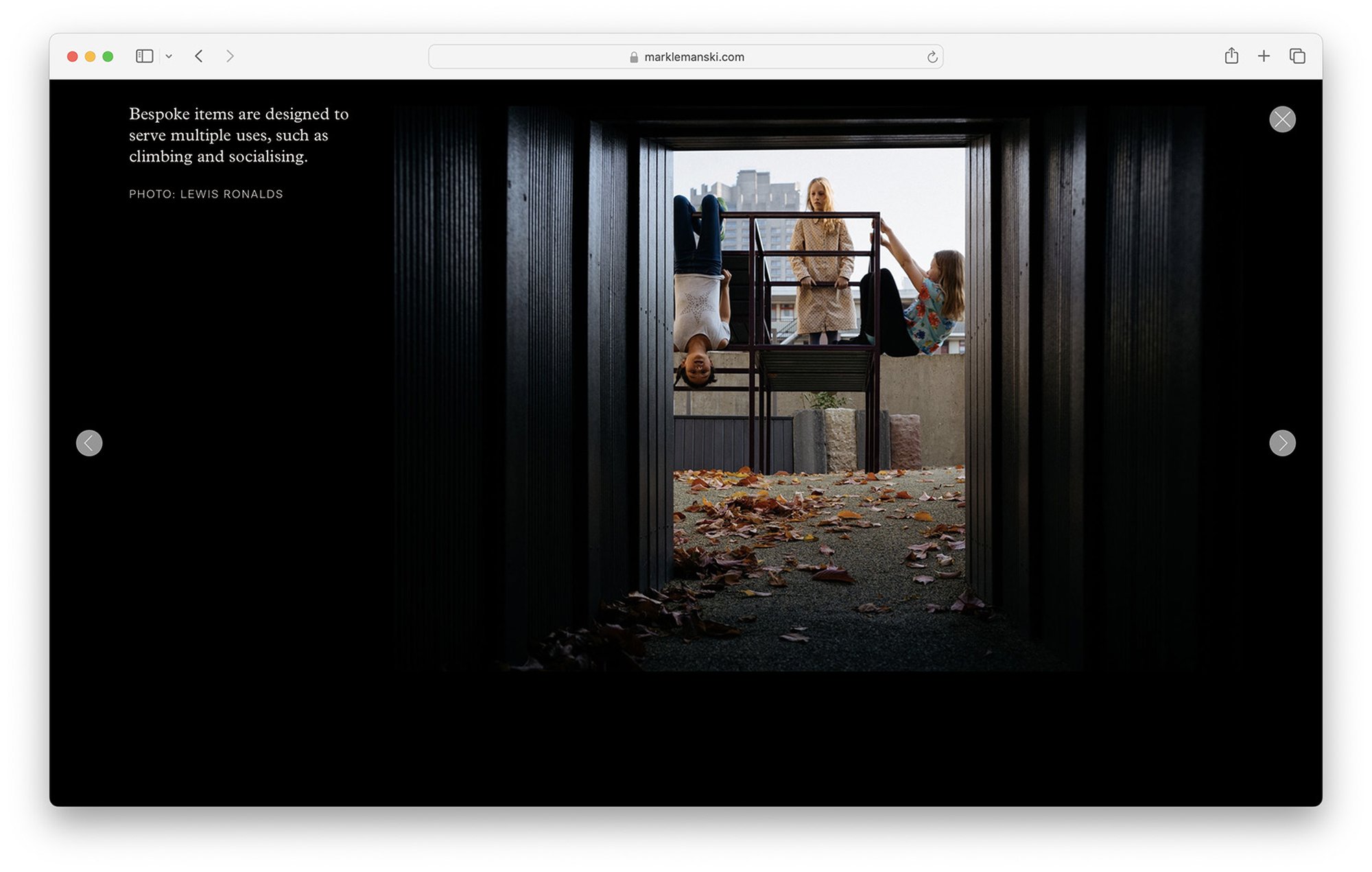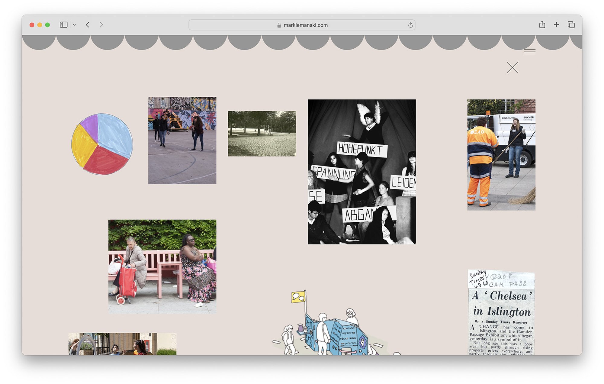 Der Internetauftritt des Urbanisten Mark Lemanski gliedert sich in vier Abschnitte: Einleitung, Portfolio, Instagram Plug-in, und ein Studio Porträt. Die sich mit den Jahreszeitenden wechselnden Hintergrundfarben (hier unten die Winter-Palette) spiegeln die urbane Stimmung wider. Die Portfoliofunktion bietet zwei Informationsebenen für jedes Projekt, eine Übersicht, sowie eine detaillierte Beschreibung jeder Abbildung.